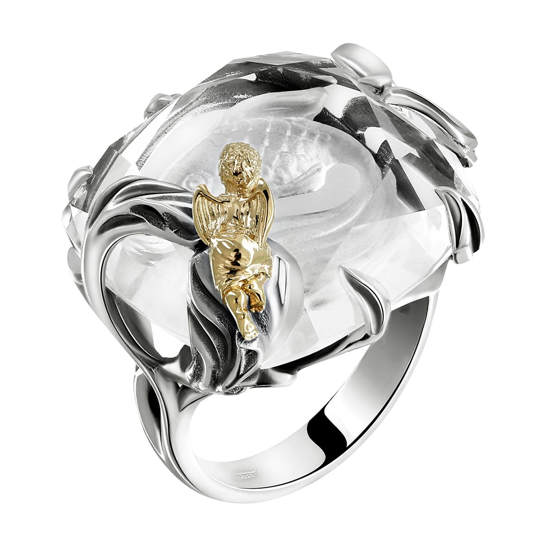 Горный хрусталь придаёт кольцу глубину и чистоту, а его кристальная прозрачность играёт бликами даже в полумраке, даря ощущение внутреннего сияния.