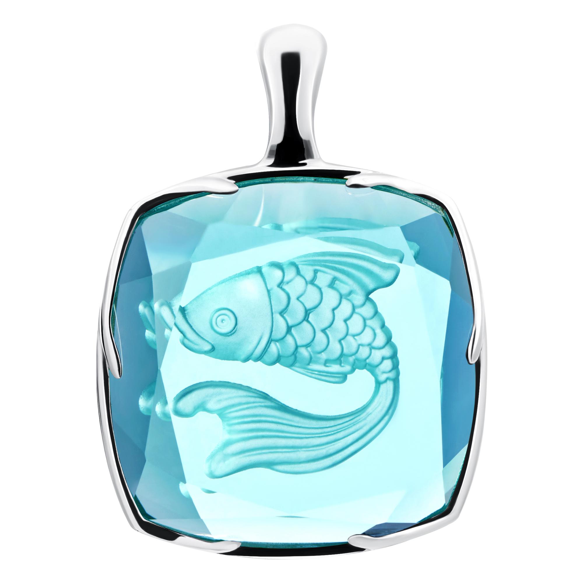 Подвеска «Рыбка» — дань модному экотренду. Её дизайн весьма эмоционален, ведь украшение будто воплощает мечту о встрече со сказкой. Ювелиры виртуозно использовали старинную технику инталии, чтобы декорировать голубой кварц чистейшим углубленным изображением с детально проработанным рельефом. Видны миниатюрные пластинки чешуи, изящные изгибы хвоста и плавников, крошечный глаз — кажется, драгоценная рыбка живая и внимательно прислушивается к желаниям своей обладательницы, чтобы в точности их исполнить.